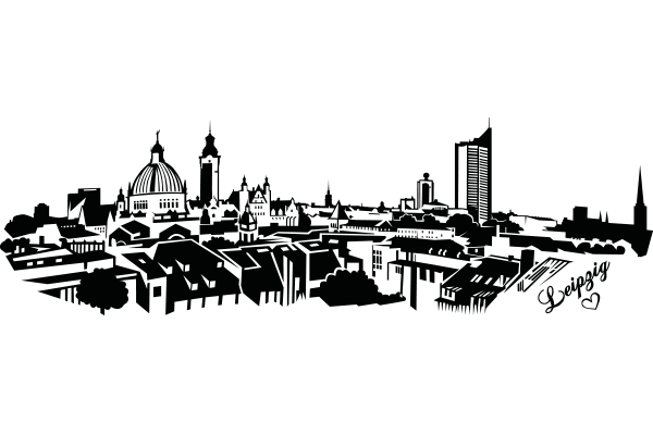 Detailreiche Leipzig Skyline auf hochwertiger deutscher Markenfolie. Zeigt Gebäude & Bäume der Stadt – perfekt für Leipzig-Fans!